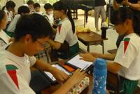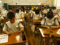 1年生は、収穫した朝顔の種を数えていました。10ずつ並べて上手に数えていました。2年生は来週出かける「町たんけん」の準備をしていました。3年生は、週末読書の本を選んでいました。1人2冊借りることができます。4年生は、福祉の学習でアイマスク体験をしていました。目が見えない不便さや周りのサポートの大切さを身をもって実感したようです。宿泊学習2日目の5年生は、かまどで火をおこしてカレーライスづくりをしました。調理は冷房のきいた室内で、煮たり炊いたりする作業は短い時間で交代しながら進めました。6年生は、体育大会に向けて表現の練習が本格的に始まっています。厳しい残暑が続きましたが、それぞれの学年がとてもよくがんばった1週間でした。