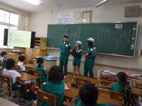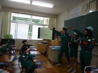 体育大会に向けて、赤・青・黄組の応援リーダーたちが、下級生の教室を訪問して応援のしかたを教えていました。6年生のリーダーたちは、少し緊張した様子ながらも、下級生を前にして立派に役目を果たそうとがんばっていました。下級生たちは、そんな先ぱいたちにあこがれのまなざしを向けていました。教室には、朝からやる気と笑顔がいっぱいに広がっています。