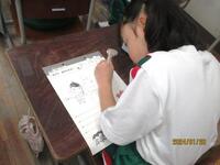 「楽しかった雪遊び」のことを絵に描いたり文でかいたりしてふり返り。(右)