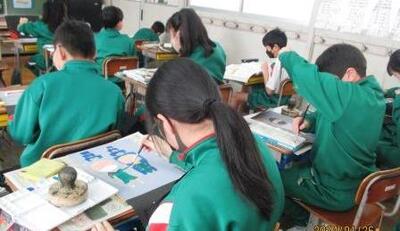 5年生は、図工で「多色刷り版画」に取り組んでいました。