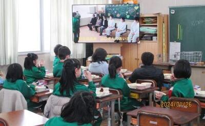 給食週間最終日。先日行われた「感謝のつどい」の動画を見ながら