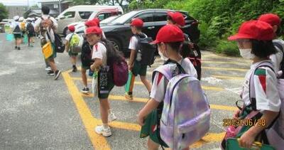 3年生が校外学習に出かけました。行先は「山車会館」と「気比神宮」。