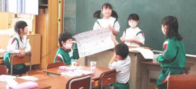 紙を持つ子、説明する子、聞き役など、分担をして本番さながらです。