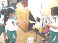 この班は、手作りおもちゃの遊び方を年長さんに教えてあげる練習です。