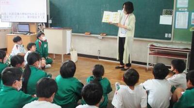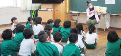朝活動の時間に、図書ボランティアさんの読み聞かせを楽しみました。