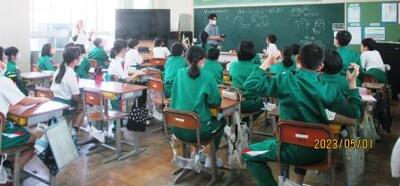 スクールカウンセラーによる「ストレスマネジメント」の授業を受ける5年生。