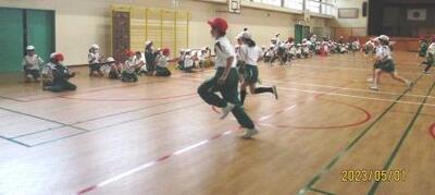 3年生は合同体育で、体育館をフル活用して、様々なリレーを楽しんでいました。