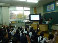 1年生は、校外学習で集めてきた松ぼっくりを使って、けん玉づくりをしていました。2年生は、学級ごとに大縄の練習をしていました。みんなでつないでいけるようにがんばっています。3年生は、「ふるさと敦賀」の発表会をしていました。調べてきたことをクイズなどを交えて分かりやすく伝えようとしています。4年生は、理科で「金属の熱の伝わり方」の実験をしていました。金属は、熱せられた部分から順に温まることが分かったようです。5年生は、比例の発展問題に挑戦していました。6年生は、外国語の授業でALTの先生と英単語クイズで盛り上がっていました。意欲的に活動する姿勢がすばらしいです。