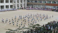 朝から広がったさわやかな秋空の下、今年度の体育大会を開催しました。子どもたちは、今までの練習の成果を、たくさんのお客様の前で力いっぱい発揮することができました。高学年色別リレーでは、3色6チームが同率1位というミラクルが起こり、大会のトリを務めた6年生の表現では、1つ1つの演技がピタリと決まって、6年間の成長を感じる凛としたたたずまいで、会場中の感動をよびました。多くの皆さまのご支援のおかげで、子どもたちにとって、かけがえのない経験となりました。本当にありがとうございました。