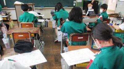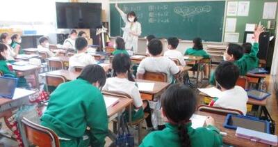 3年生は、算数で復習プリントの答え合わせをしていました。