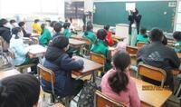 英語の絵本を読んでもらった3年生、時々笑い声が上がっていました。