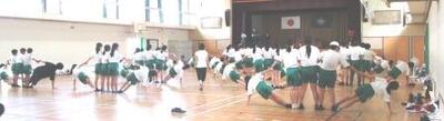 1年生は、体育大会に向け、ラジオ体操の練習をしていました。