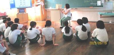 今日は3・6年生の図書ボランティアさんによる読み聞かせの日。