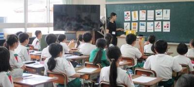 4年生教室では、教育実習生が外国語の授業にトライしていました。