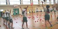 2年生は、体育会で「ダンシング玉入れ」の練習です。