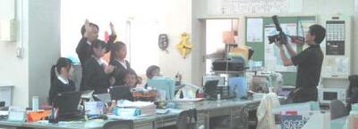 このグループのセレクトは職員室。ポーズをきめて、ハイチーズ!