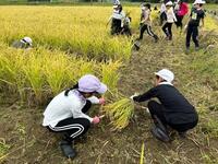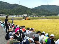 最後にはコンバインでの稲刈りや脱穀も見学でき、