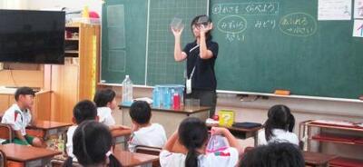 子どもたちは、発音を聞き、元気いっぱいリピートしていました。
