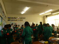 1年生は、カタカナを使っていろいろな言葉を書いていました。背筋を伸ばし、鉛筆をしっかり握って一画一画丁寧に書いています。2年生は、「おもちゃランド」で使うおもちゃが完成し、紹介し合っていました。4年生は、体育でソフトバレーボールの練習が始まり、ラリーが何回続くか挑戦していました。5年生は、「地球」の合唱練習をしていました。6年生の全員合唱の姿が、来年の目標になっているようです。6年生は、比例と反比例の問題を考えていました。自分の考えを分かりやすいように伝えようと、言い方を工夫して説明しています。
