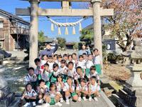 校外学習の予備日だった1年生は、学校に隣接する剣神社にお散歩に行き、敷物を敷いてお弁当をいただきました。爽やかな秋晴れの空の下、おいしいお母さん弁当を食べて、笑顔にっこにこの1年生でした。