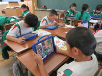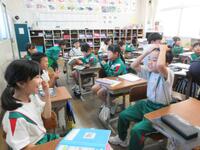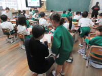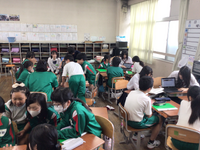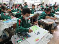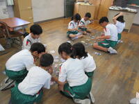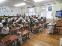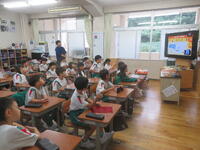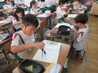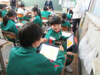 1年生は、『くじらぐも』の音読大会に向けて、役割分担を話し合っていました。2年生は、九九の練習が軌道に乗ってきて、ペアで聞きあったり問題を出し合ったりしています。3年生の外国語活動では、アルファベットの「神経衰弱」で盛り上がっていました。4年生は、読書感想画を熱心に描いています。5年生は、外国語の学習でALTの先生との活動を楽しみながらがんばっています。6年生は、修学旅行のレポートが完成に近づいているようです。