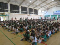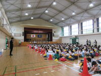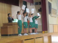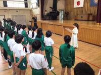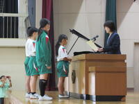 1学期の最終日、まずは表彰式が行われ、さまざまな賞を受賞したみなさんに大きな拍手が送られました。続いての終業式では、全校で元気いっぱいに校歌を歌い上げました。校長先生からは、画像を使って1学期の成長を振り返りながら、「がんばった自分をほめてください」というお話がありました。教室に戻ってからは、担任の先生から一人一人1学期の通知表を受け取り、がんばったことや、できるようになったことを振り返りました。みんなの努力がたくさんつまった1学期。よくがんばった100日間です。秋休みにはしっかりエネルギーをチャージして、また元気に会いましょう。