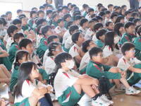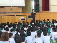 最初にステージで素晴らしい歌声を披露してくださり、子どもたちから「すごい!」「きれい!」と驚きの声と盛大な拍手が巻き起こりました。その後の練習でも専門的なアドバイスをたくさんくださり、6年生の歌声がさらにレベルアップしました。