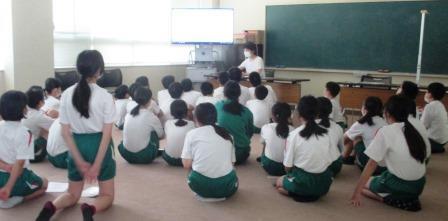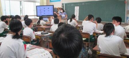自然に恵まれた粟野っ子。取り組みの動画を興味深く見ていました。