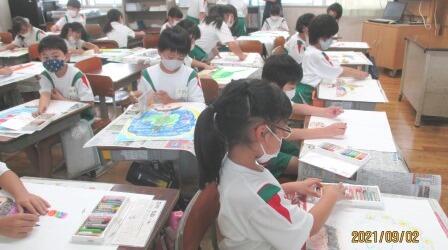4年生は、図工で「まぼろしの花」の仕上げをしていました。