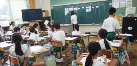 4年生は、学級会で「体育大会テーマ」についての話し合い。