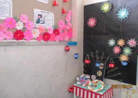 花火、お祭りやぐらにちょうちん、ヨーヨーつり、金魚すくい。