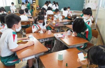 2年生の生活科では、アサガオの種の観察シートをかいていました。