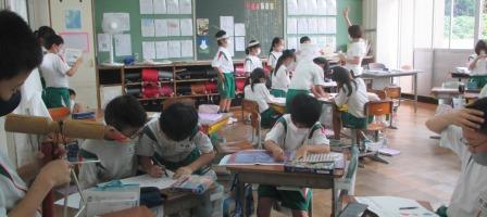 この学級の題材は、東京の学校でのトンボの命を守る取り組みです。