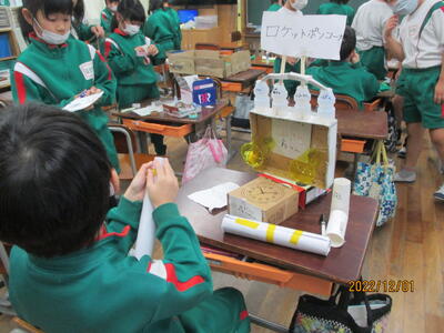 1年生は生活科で、保育園との交流のためのおもちゃづくり。