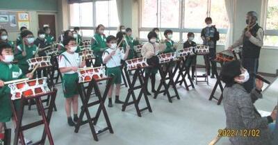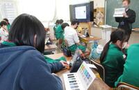 音楽室では3年生が元気いっぱい太鼓をたたいていました。