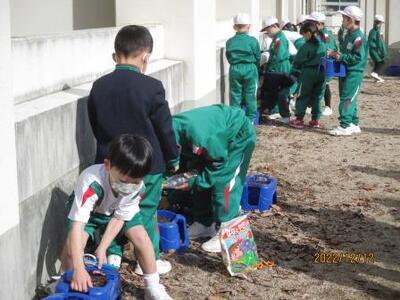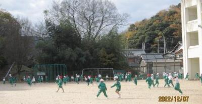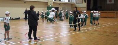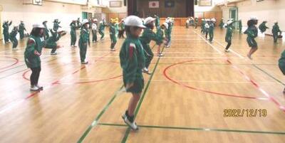 1年生は、寒さにも負けず、合同体育で「なわとび」に取り組んでいました。