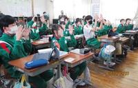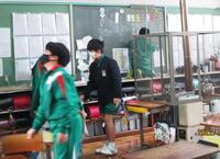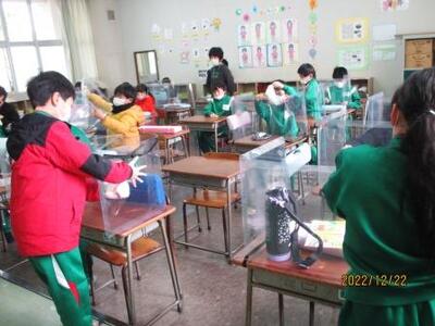 2年生は、音楽の授業の後、自分たちが使ったアクリル板を