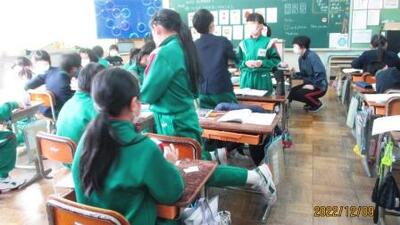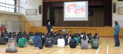 「さあ、明日から冬休み!安全で健康な生活を送りましょう」というお話を聞いた後、