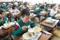 どの教室の子どもたちも、もりもりと食べていました。これは2年生の様子です。
