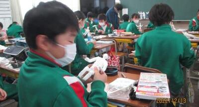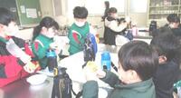 2年生は、1学級ずつ順番に「イモ料理」を楽しんでいました。