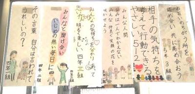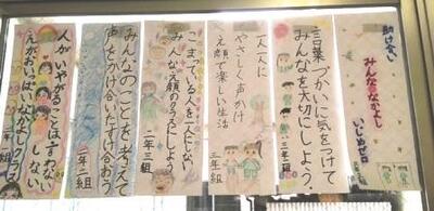 「人権標語」がずらりと児童玄関に並びました。