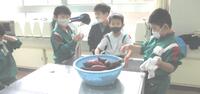 同時間に、2年生1学級の子どもたちは家庭科室でサツマイモを洗っていました。