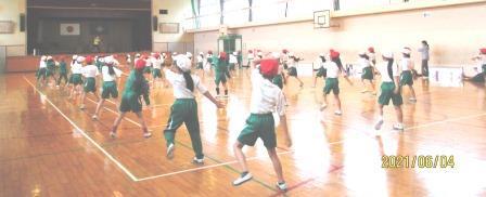 2年生2クラスが「パプリカ」の曲でダンシング。