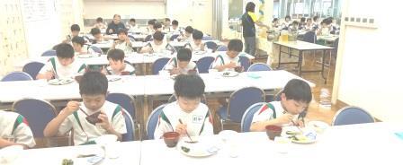 「わー大きい!」と驚きながら、口いっぱいにほおばる2年生。