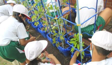 2年生の野菜が、ぐんぐん育ち、子どもたちは大喜び。