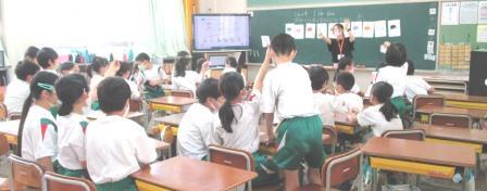 国語の時間を利用して、1年生が学級みんなで図書館利用。