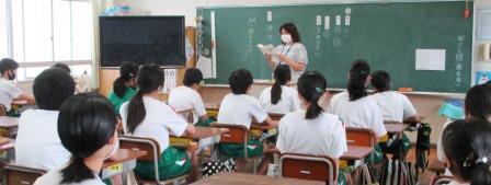 これは6年生教室。子どもたちは、本の世界に引き込まれていました。