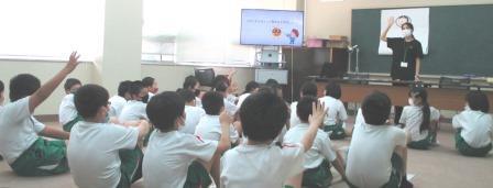 3年生、文化庁巡回事業「講談の世界」のワークショップの様子です。