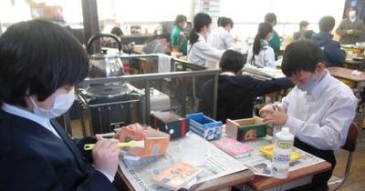 6年生は、卒業制作の「オルゴールつき小物入れ」づくりです。