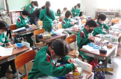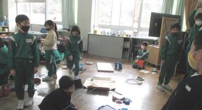 3年生は、理科で「磁石と電流」を使ったおもちゃづくりをしていました。